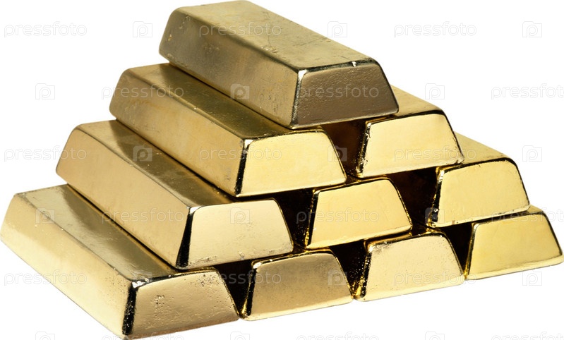 Золотые слитки на белом фоне