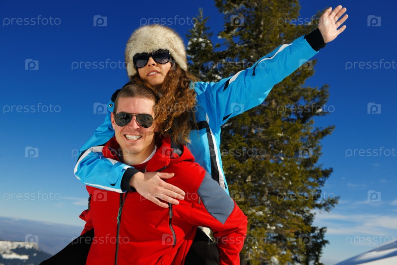 Молодая пара отдыхает на свежем воздухе зимой