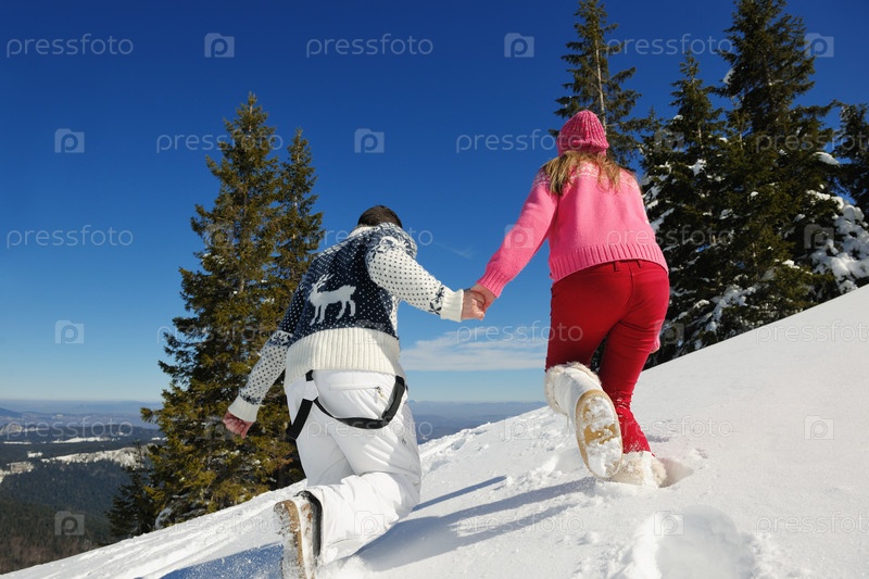 Молодая пара отдыхает на свежем воздухе зимой