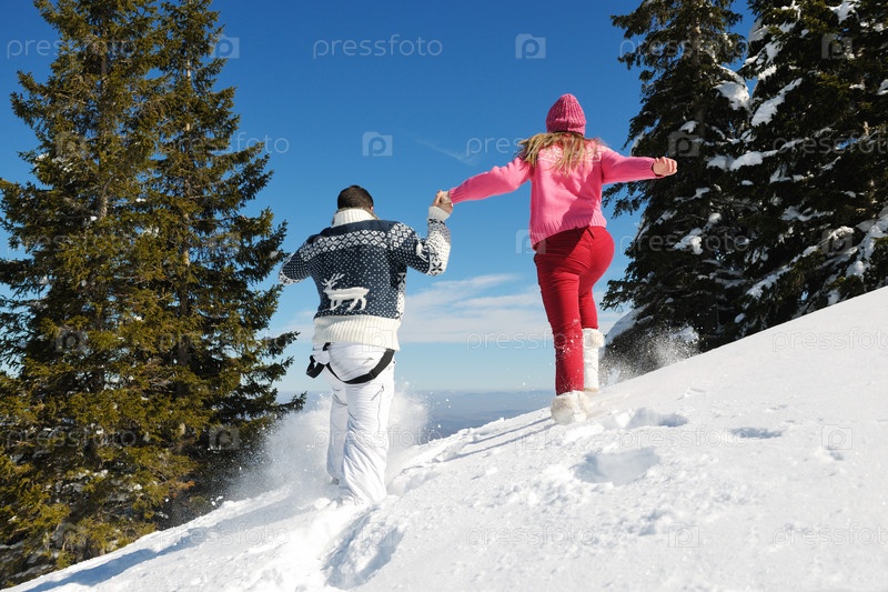 Молодая пара отдыхает на свежем воздухе зимой