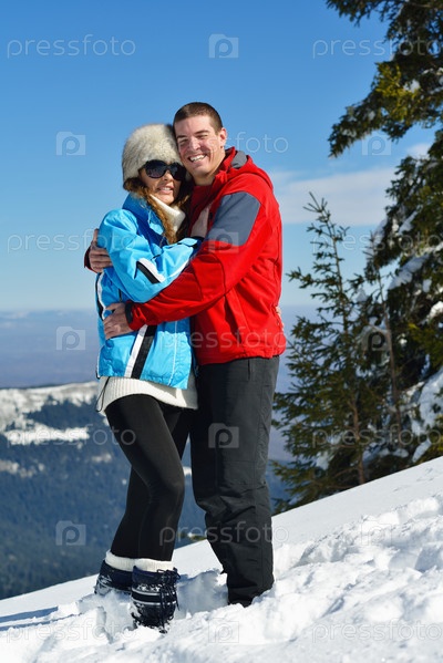 Молодая пара отдыхает на свежем воздухе зимой