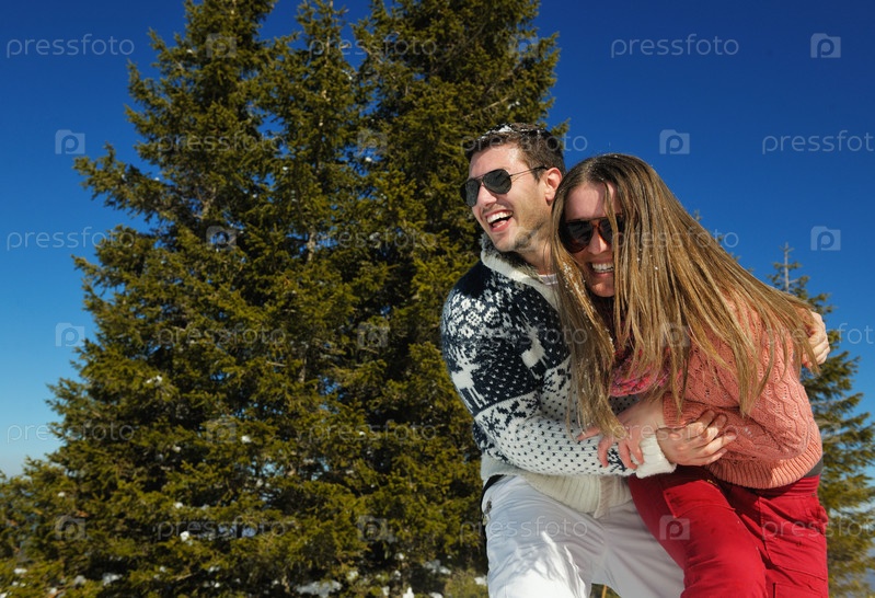 Молодая пара отдыхает на свежем воздухе зимой