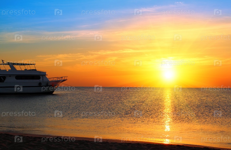 Яхта возле морского берега на восходе солнца