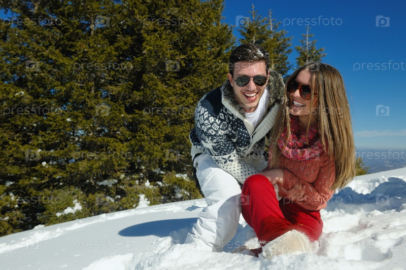 Молодая пара отдыхает на свежем воздухе зимой