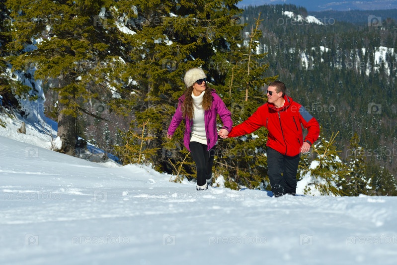 Молодая пара отдыхает на свежем воздухе зимой