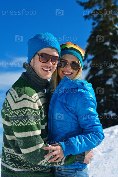 Молодая пара отдыхает на свежем воздухе зимой