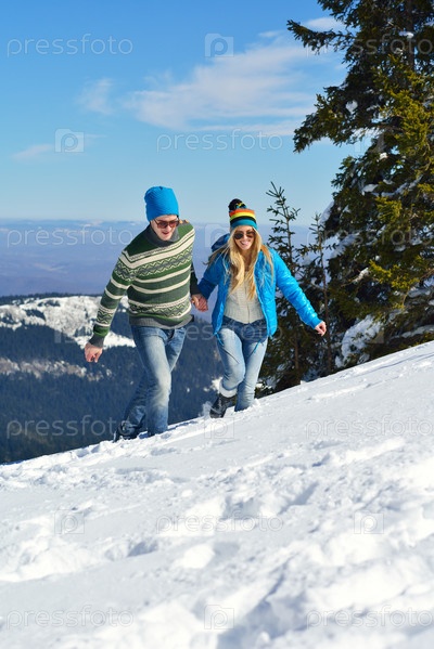 Молодая пара отдыхает на свежем воздухе зимой