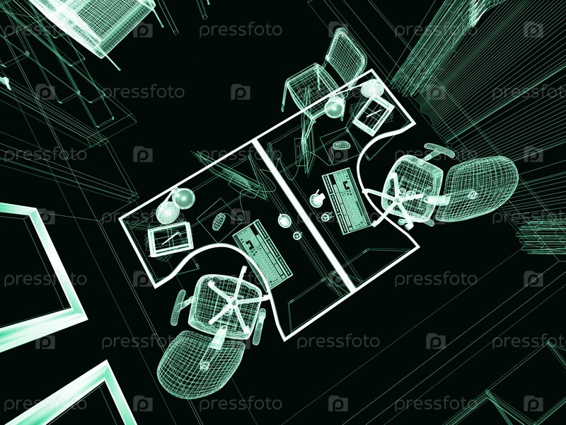 Современный интерьер офиса, 3D-изображение