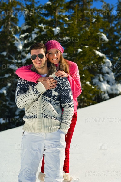 Молодая пара отдыхает на свежем воздухе зимой