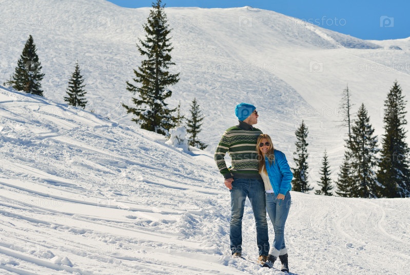 Молодая пара отдыхает на свежем воздухе зимой
