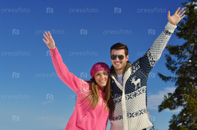 Молодая пара отдыхает на свежем воздухе зимой