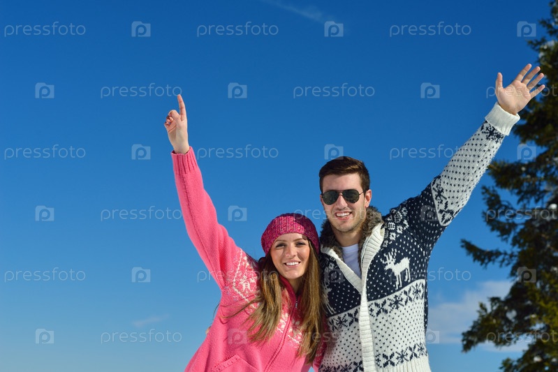 Молодая пара отдыхает на свежем воздухе зимой