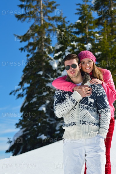 Молодая пара отдыхает на свежем воздухе зимой