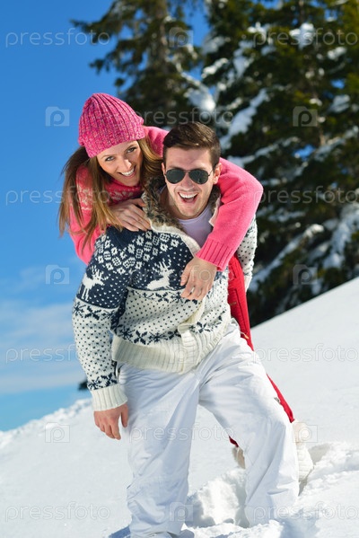 Молодая пара отдыхает на свежем воздухе зимой