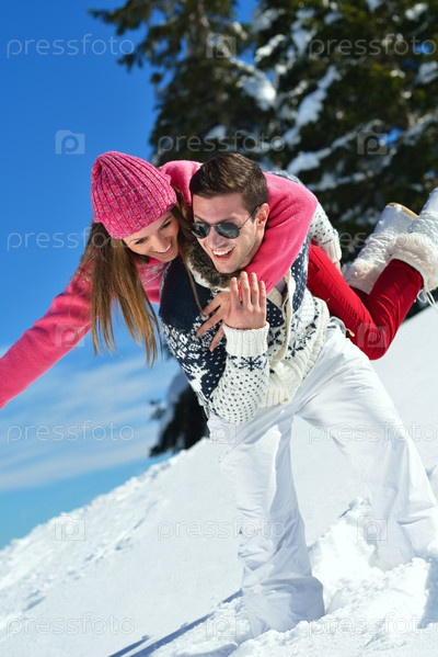 Молодая пара отдыхает на свежем воздухе зимой