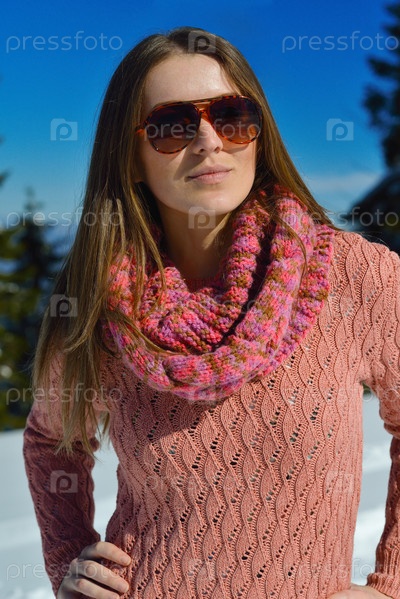 Счастливая женщина зимой на свежем воздухе