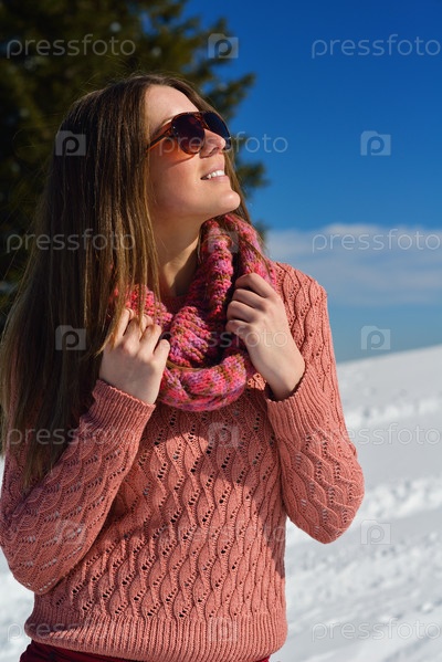 Счастливая женщина зимой на свежем воздухе