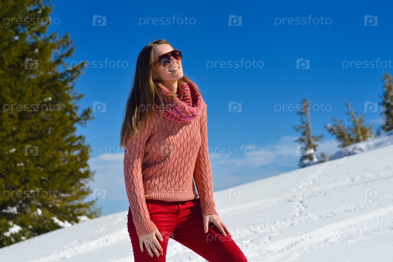 Счастливая женщина зимой на свежем воздухе