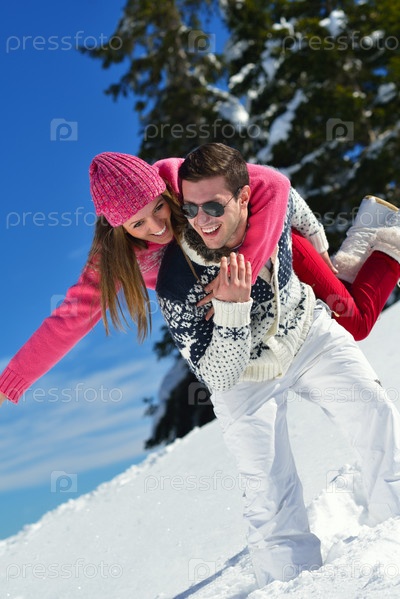 Молодая пара на зимних каникулах