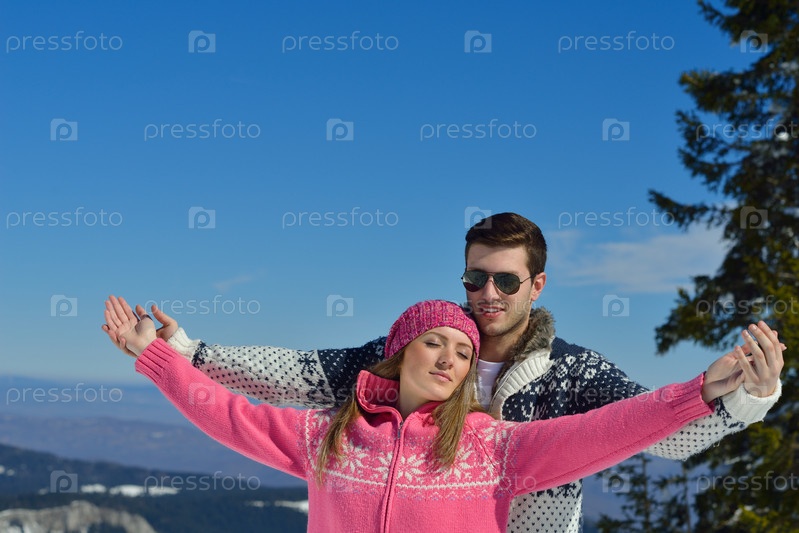 Молодая пара на зимних каникулах