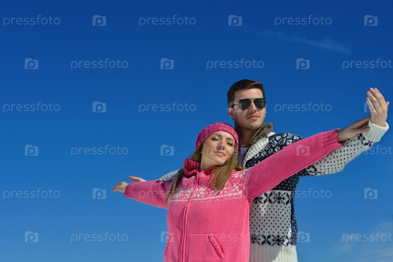 Молодая пара на зимних каникулах