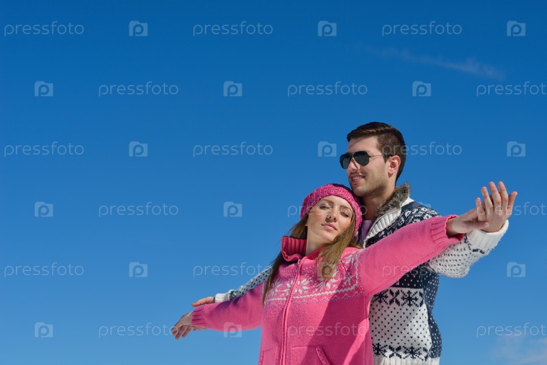 Молодая пара на зимних каникулах