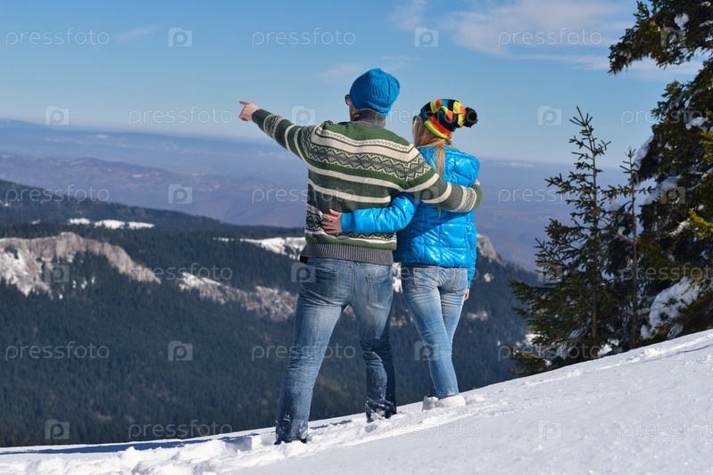 Молодая пара на зимних каникулах