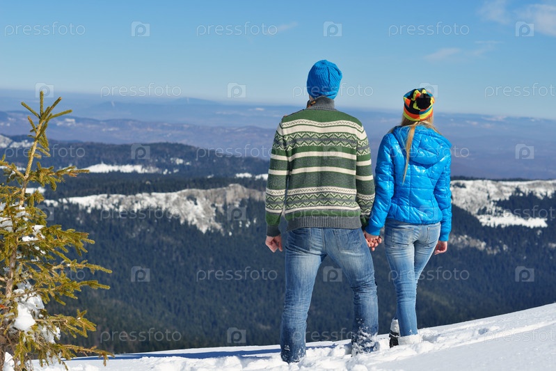 Молодая пара на зимних каникулах