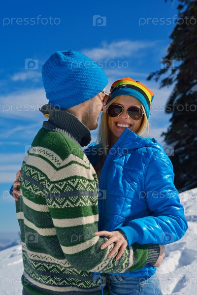 Молодая пара на зимних каникулах