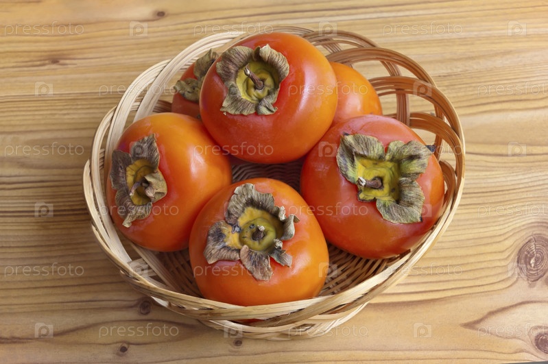 Хурма в корзинке крупным планом