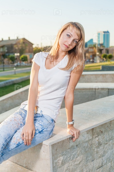 Блондинка в городском парке