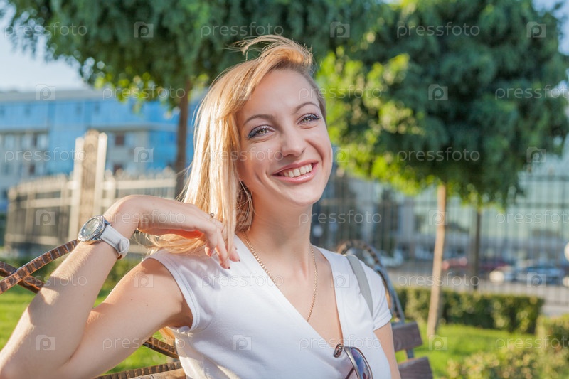Блондинка в городском парке