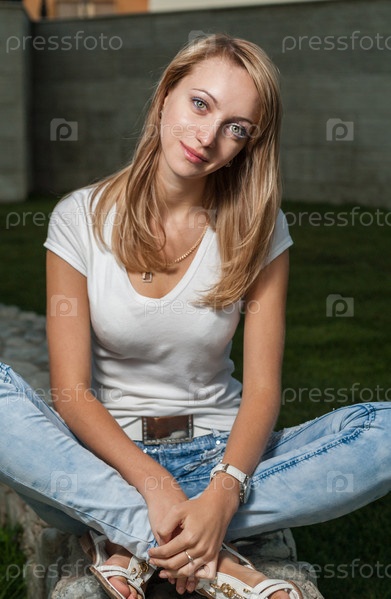 Блондинка в городском парке