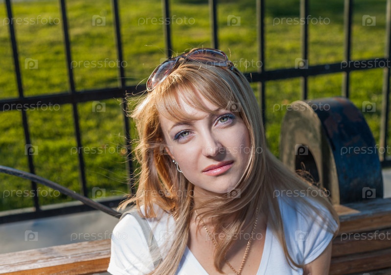 Блондинка в городском парке