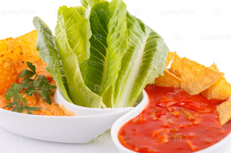 Начос и красный соус, сыр, овощи