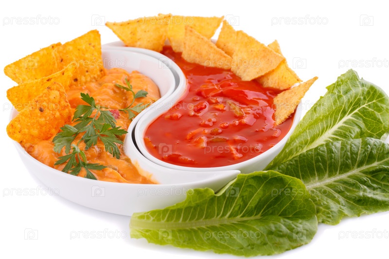 Начос и красный соус, сыр, овощи