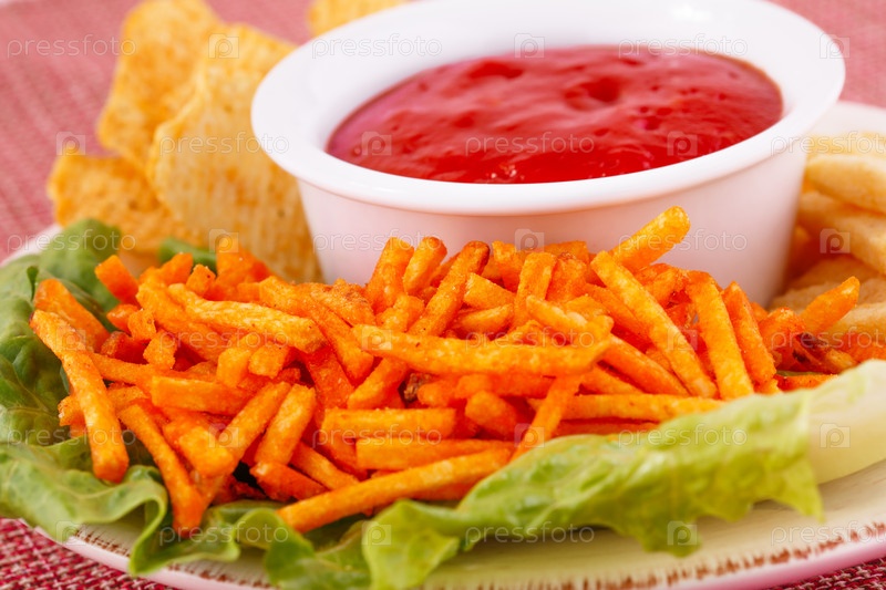 Картофельные чипсы с кетчупом