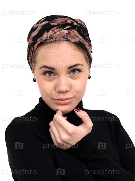 Портрет молодой женщины на белом фоне, смотрит на вас