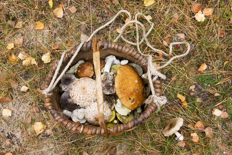Плетеная корзина с грибами