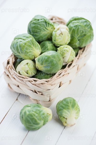 Брюссельская капуста в плетеной корзине