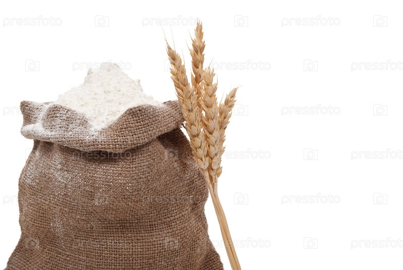 Мешок муки и пшеничные колосья