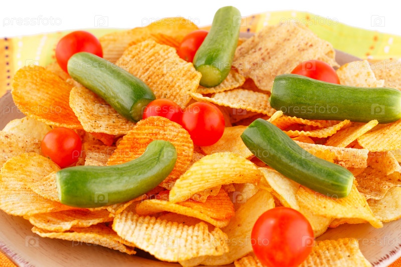 Картофельные чипсы и овощи
