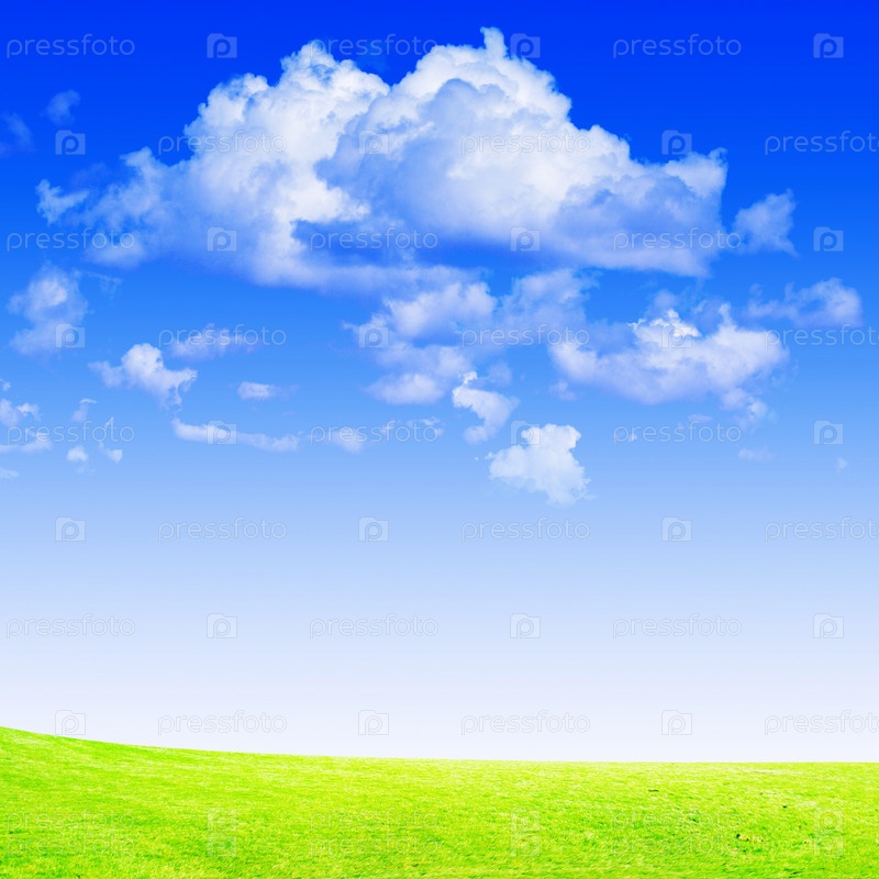 Синее небо над зеленым лугом