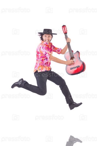 Человек с гитарой, изолированный на белом