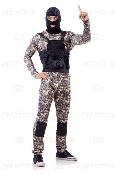 Солдат в камуфляже, изолированный на белом