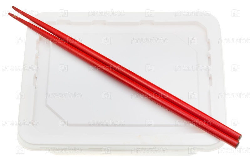 Полистироловая чашка и палочки для еды