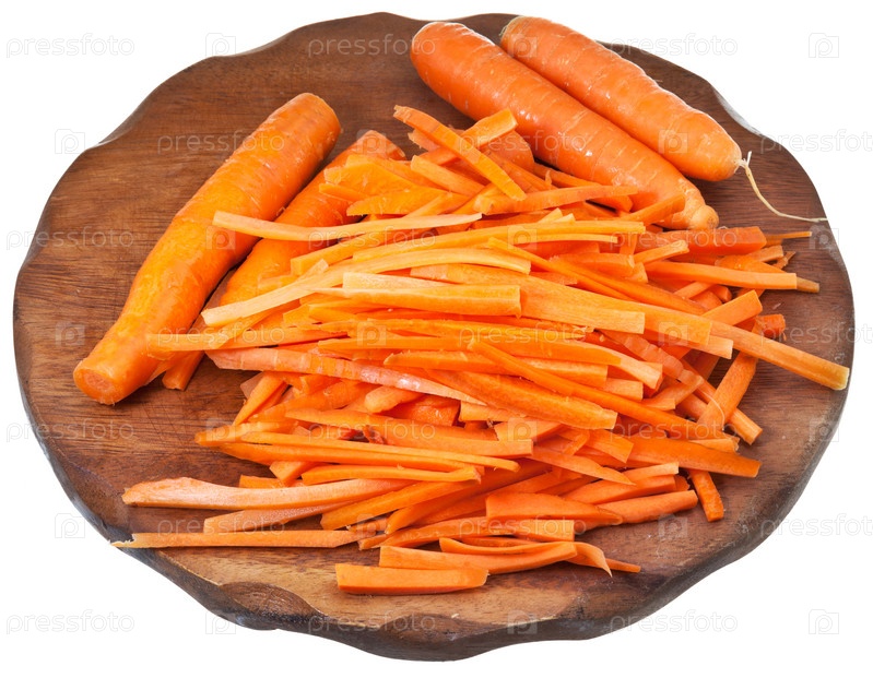 Сырая нарезанная морковь на деревянной доске