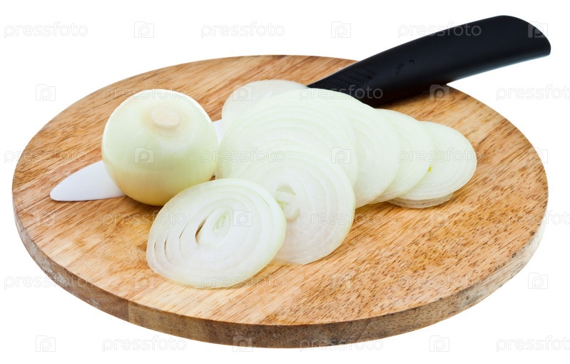 Нарезанный лук с керамическим ножом на доске