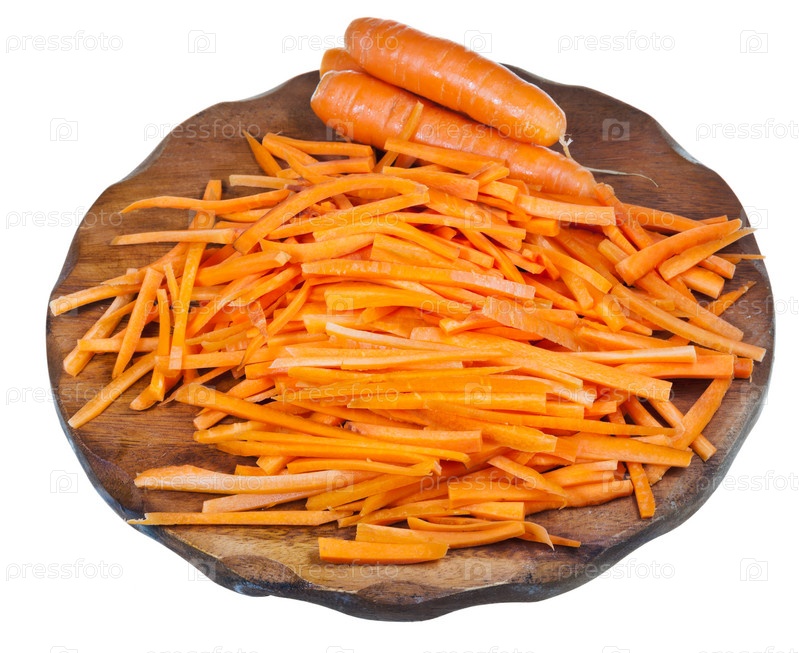 Сырая нарезанная морковь на деревянной доске