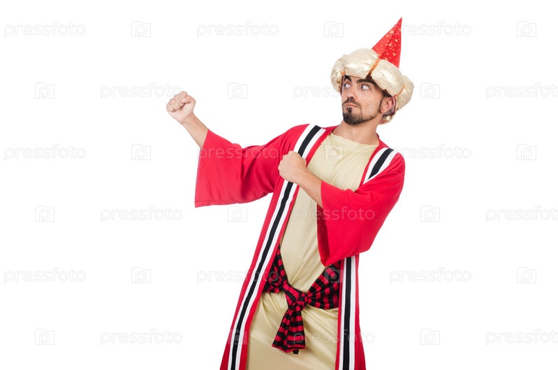 Волшебник в костюме, изолированный на белом фоне